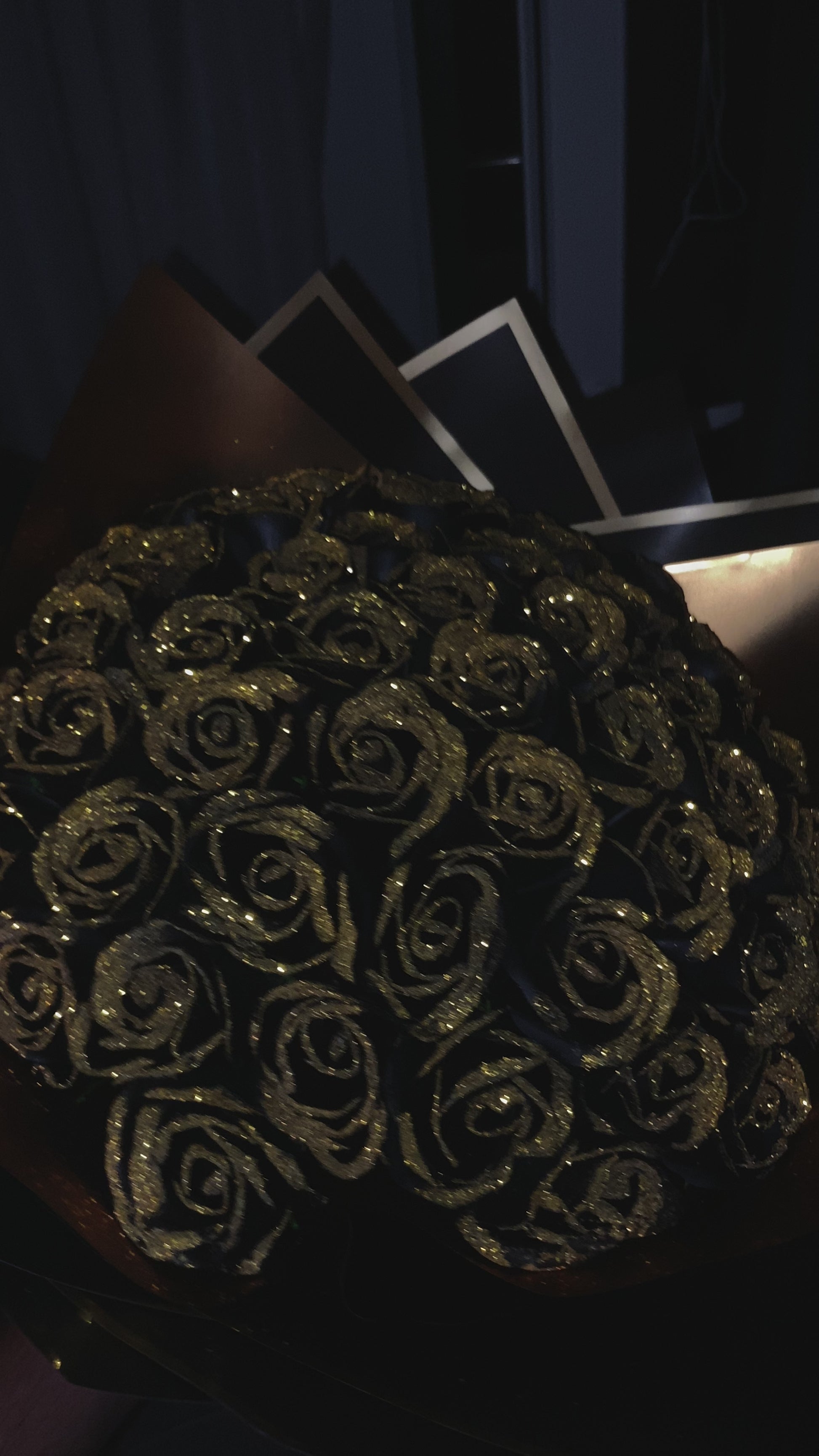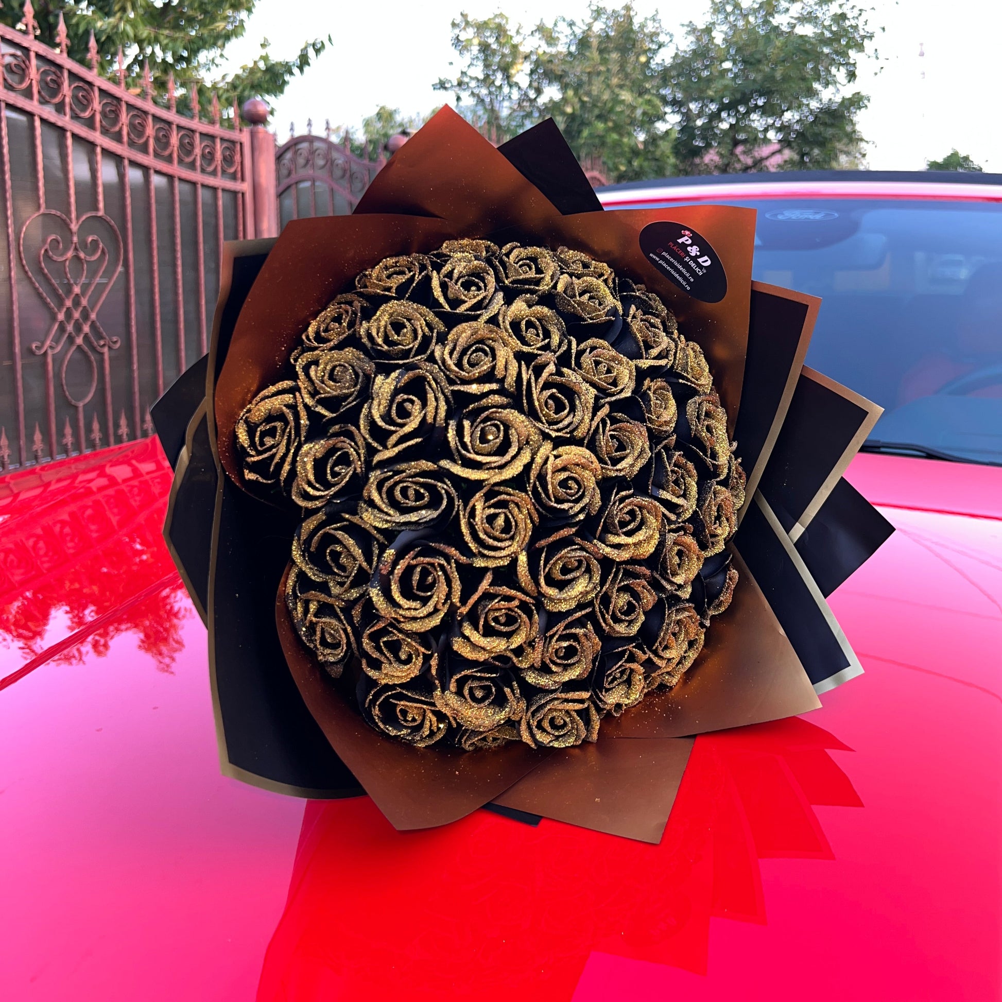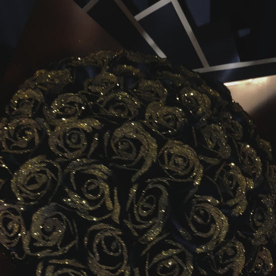 Buchet Tranadafiri Negri Cu Sclipici Auriu Premium